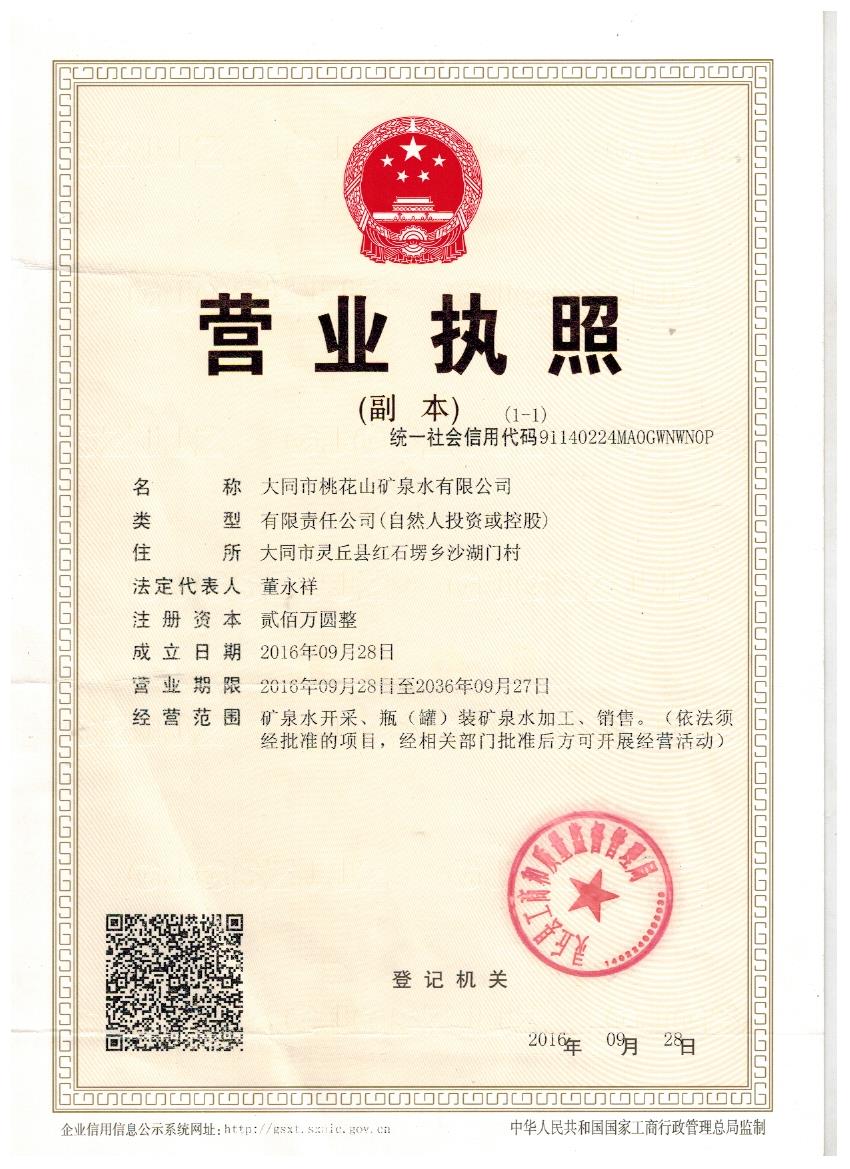大同市桃花山矿泉水有限公司是石头门泉矿泉水产业(山西)集团有限公司旗下子公司,授权取得石头门泉矿泉水开发权,年生产桶装矿泉水、瓶装矿泉水20万吨。